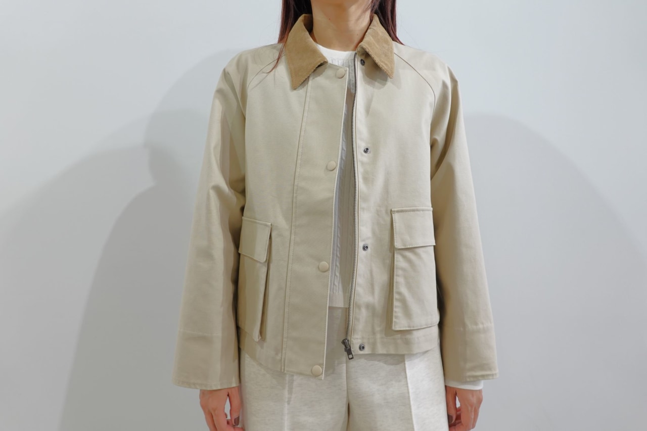 アウターに選んだのは、襟と袖口のコーデュロイがアクセントになる「ジップアップショートジャケット」です。カジュアルさもありながら、適度なハリ感のある素材でシャープな印象に。ショート丈なのでどんなコーディネートにも合わせやすく、スタイルアップもかないます。