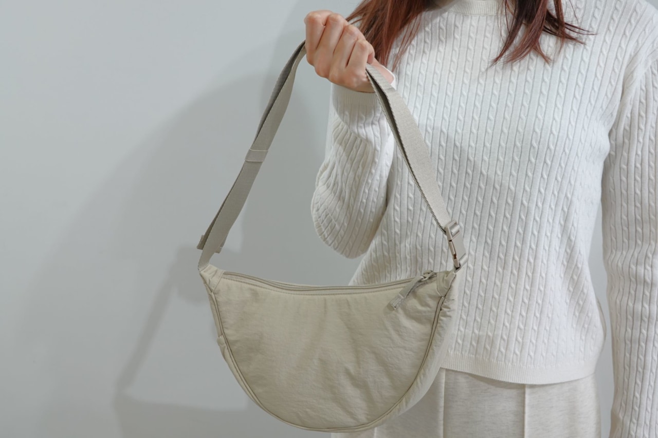 バッグには、ユニクロのベストセラー「ラウンドミニショルダーバッグ」の新作をチョイス。
