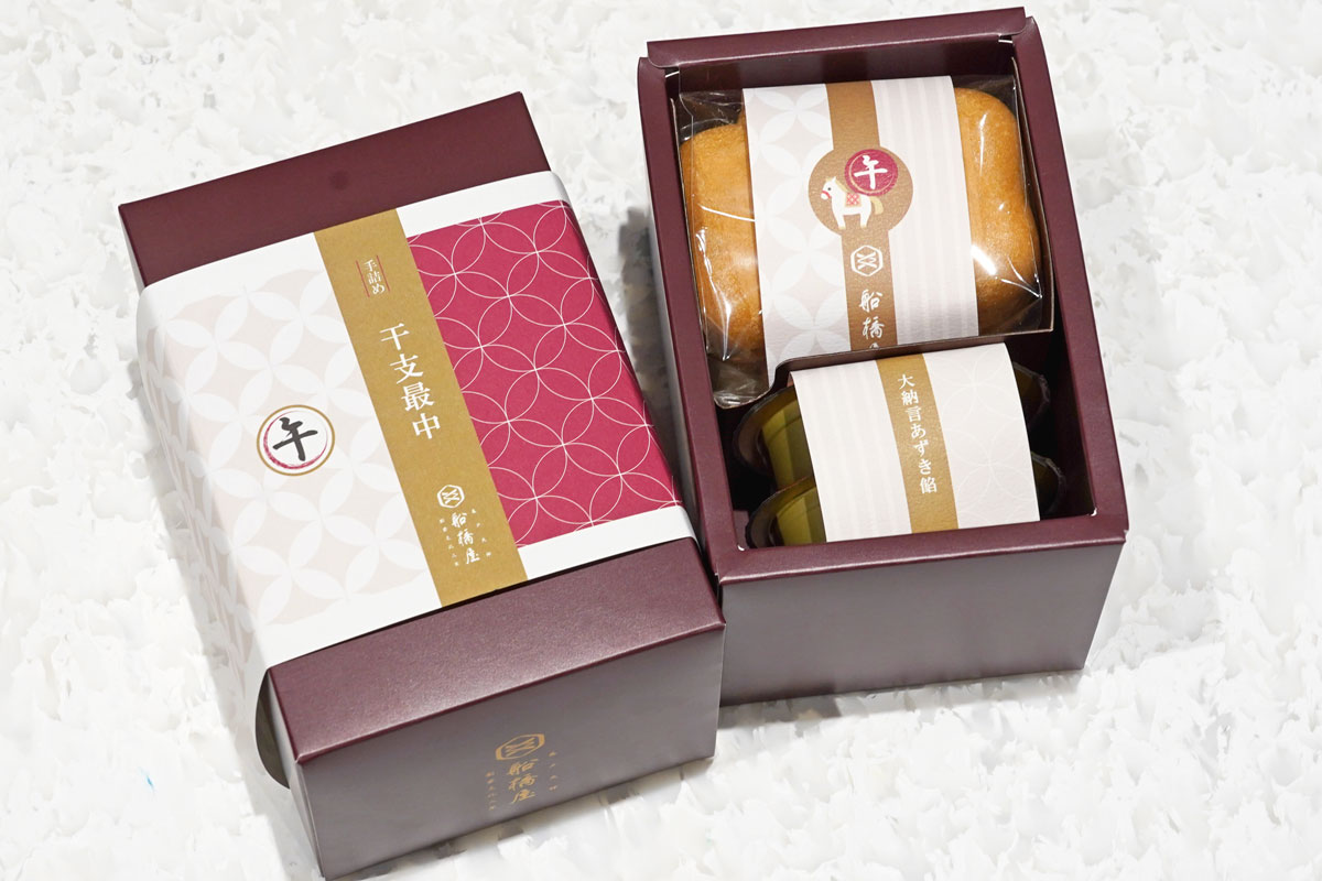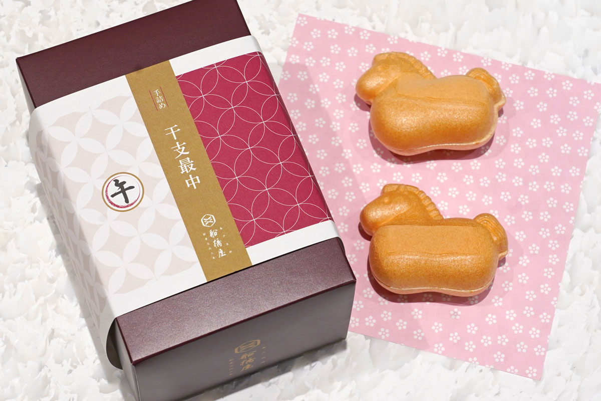 1805年江戸時代に創業し、2025年で創業220年目を迎えた有名なくず餅屋さん「船橋屋」からは、「午(うま)」をモチーフにした縁起菓子「干支最中(午)」を数量限定で販売しています。