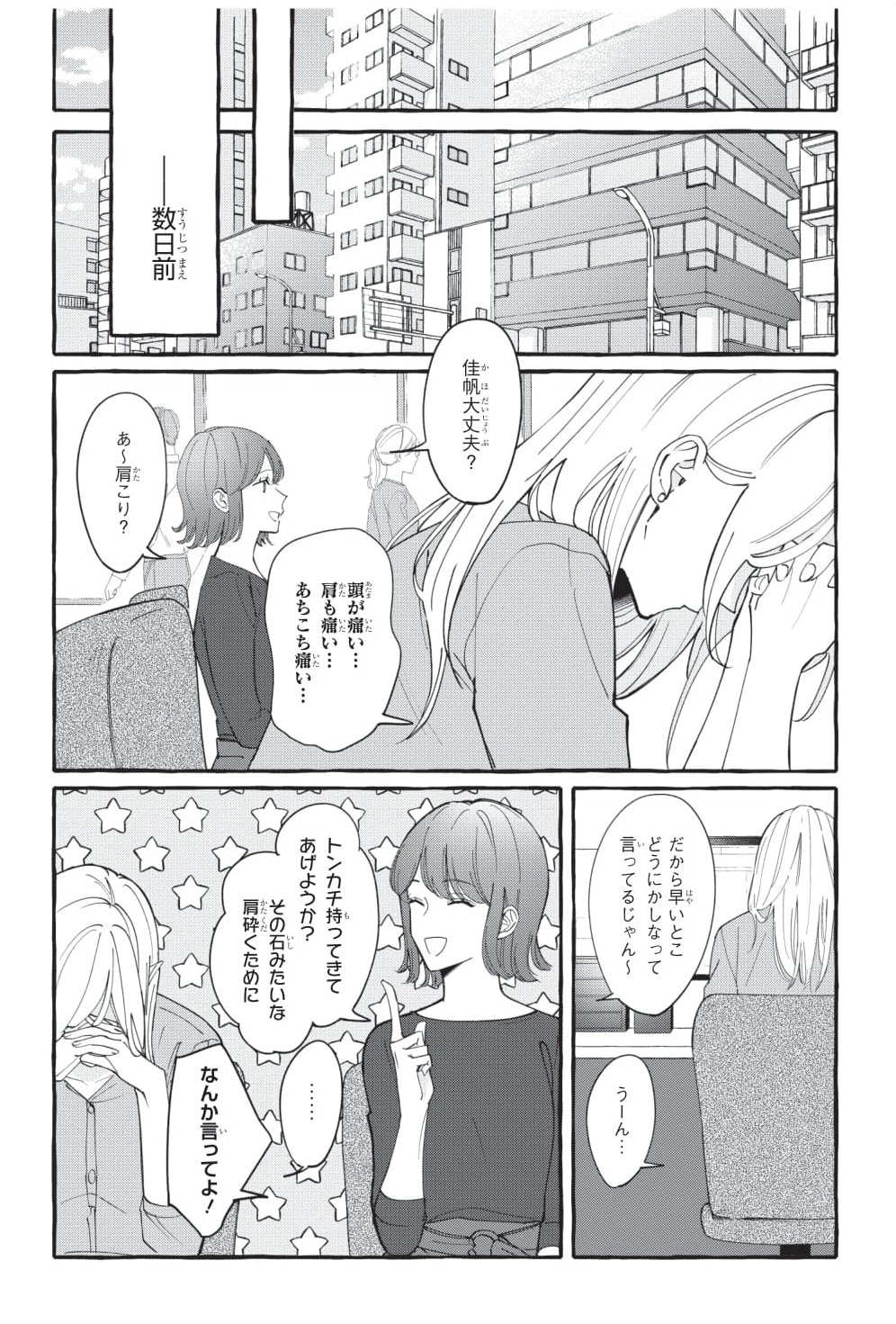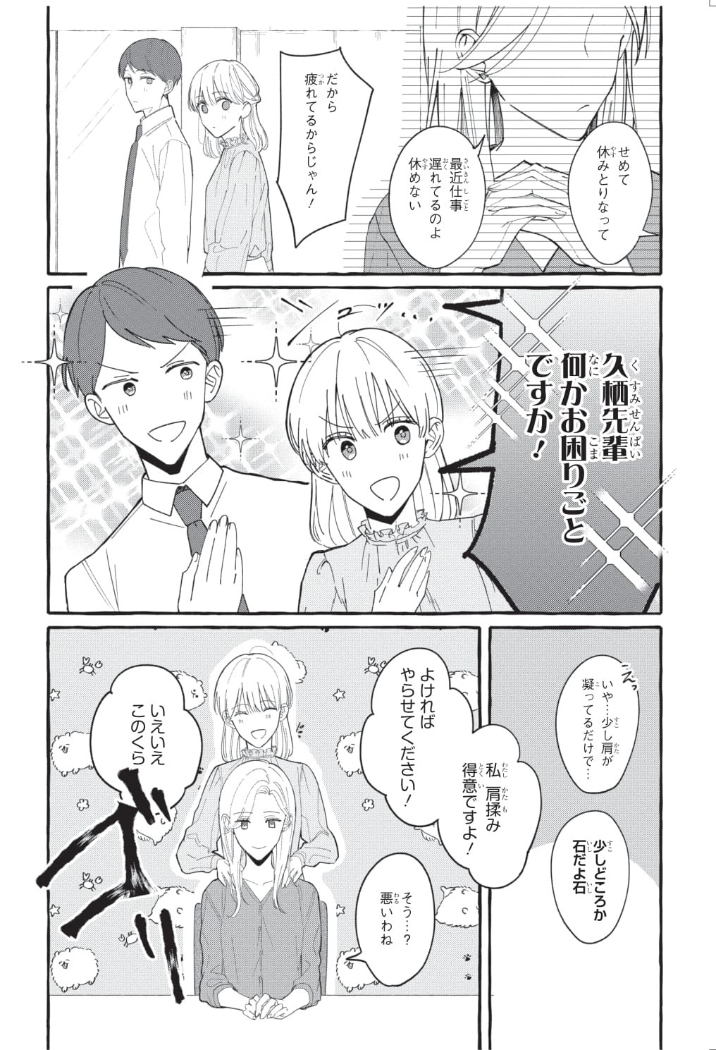激務だからか、厄介な男友達がいるからか……。節々の痛みに悩まされる佳帆が訪れた整体院で遭遇したのは、痛みの理由の張本人かもしれない泰。にっこり微笑んでいますが、笑顔に隠された真意は?