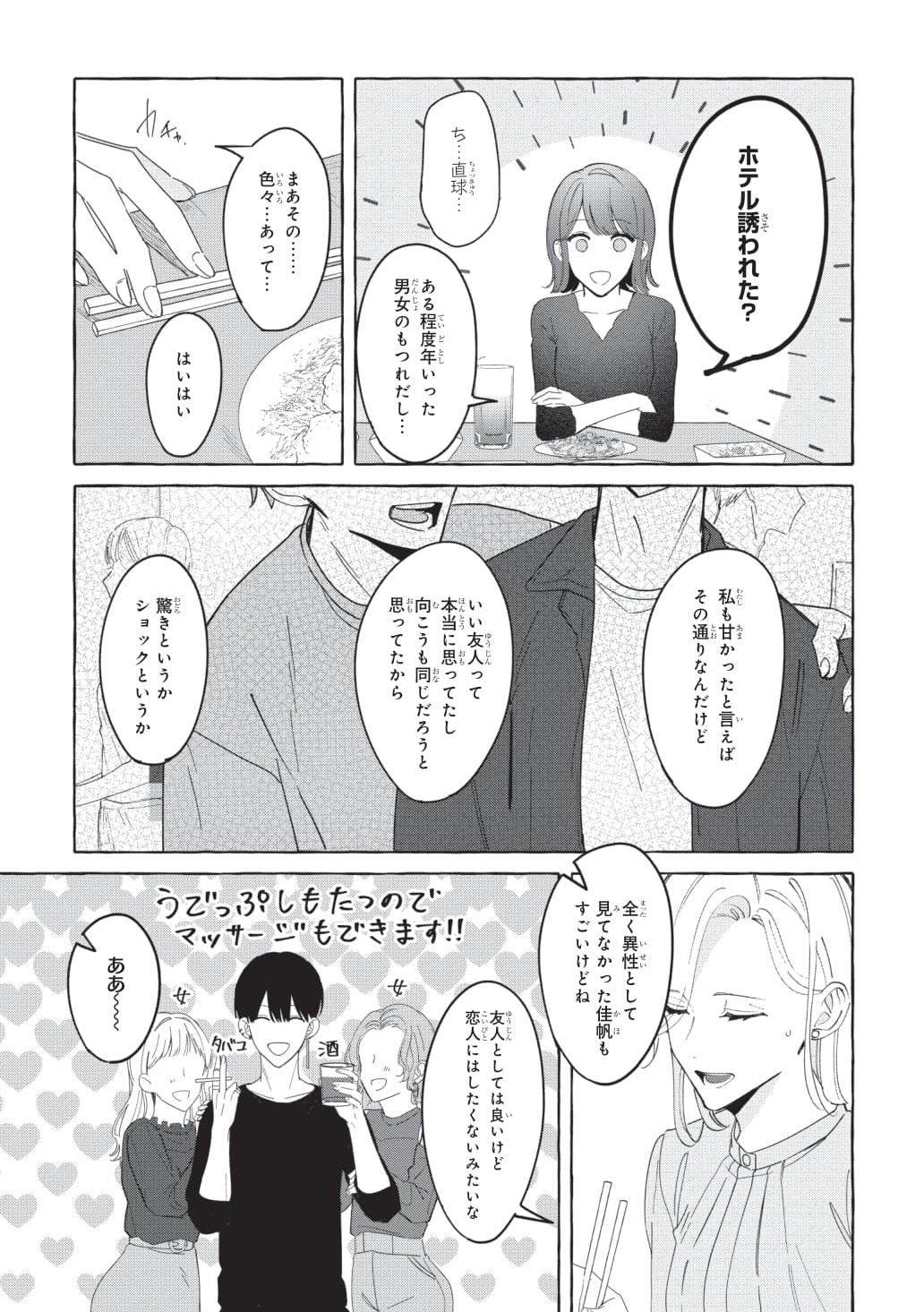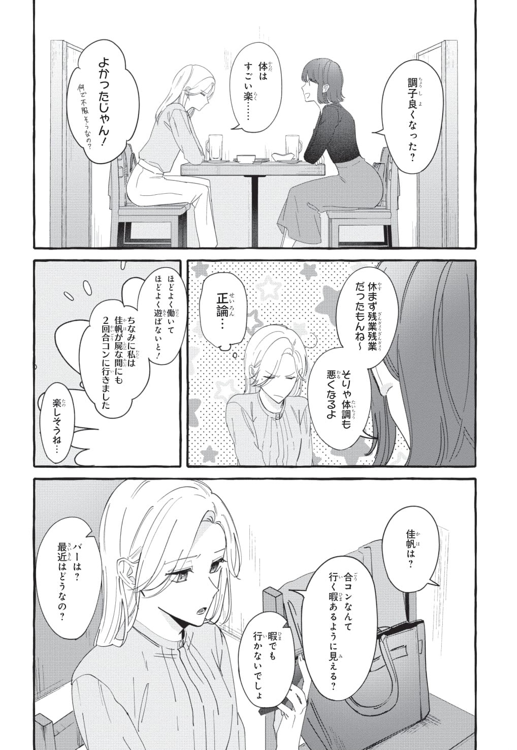 毎日仕事に追われるバリキャリ女性・佳帆の楽しみはバーで、ある男性と飲みながら気兼ねなく話すこと。そんな気を遣わずいい友だち関係だった二人だが、ある日一線を越えてしまい……。