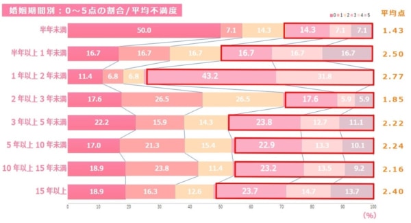 婚姻期間別の平均不満度は以下の通りです。