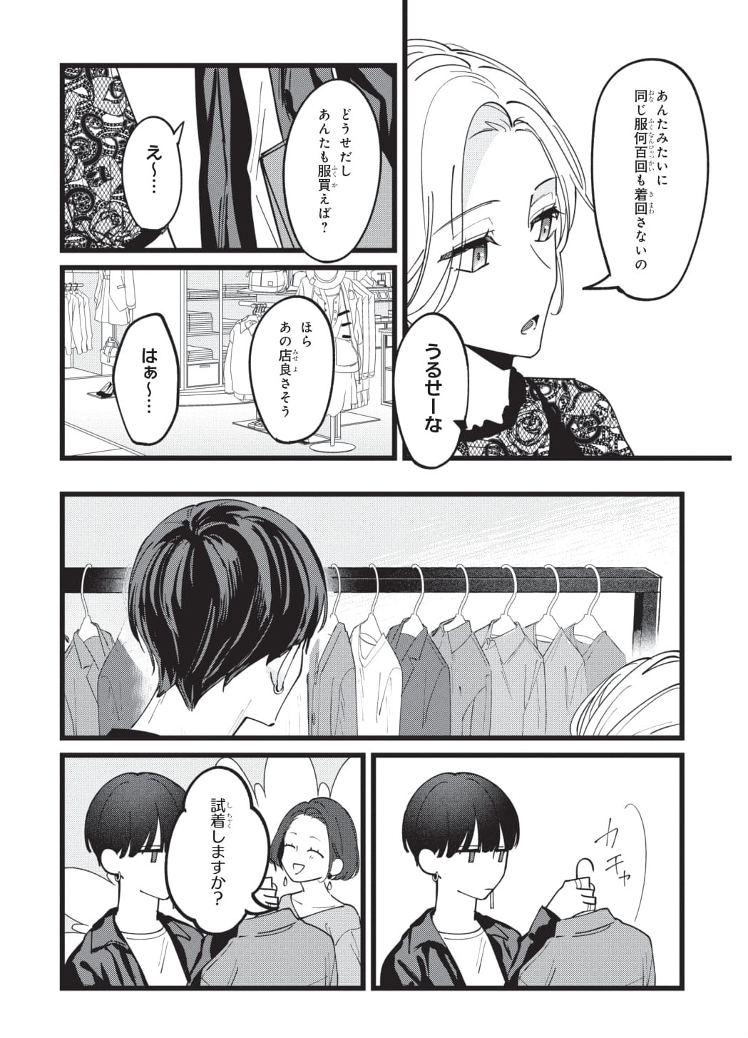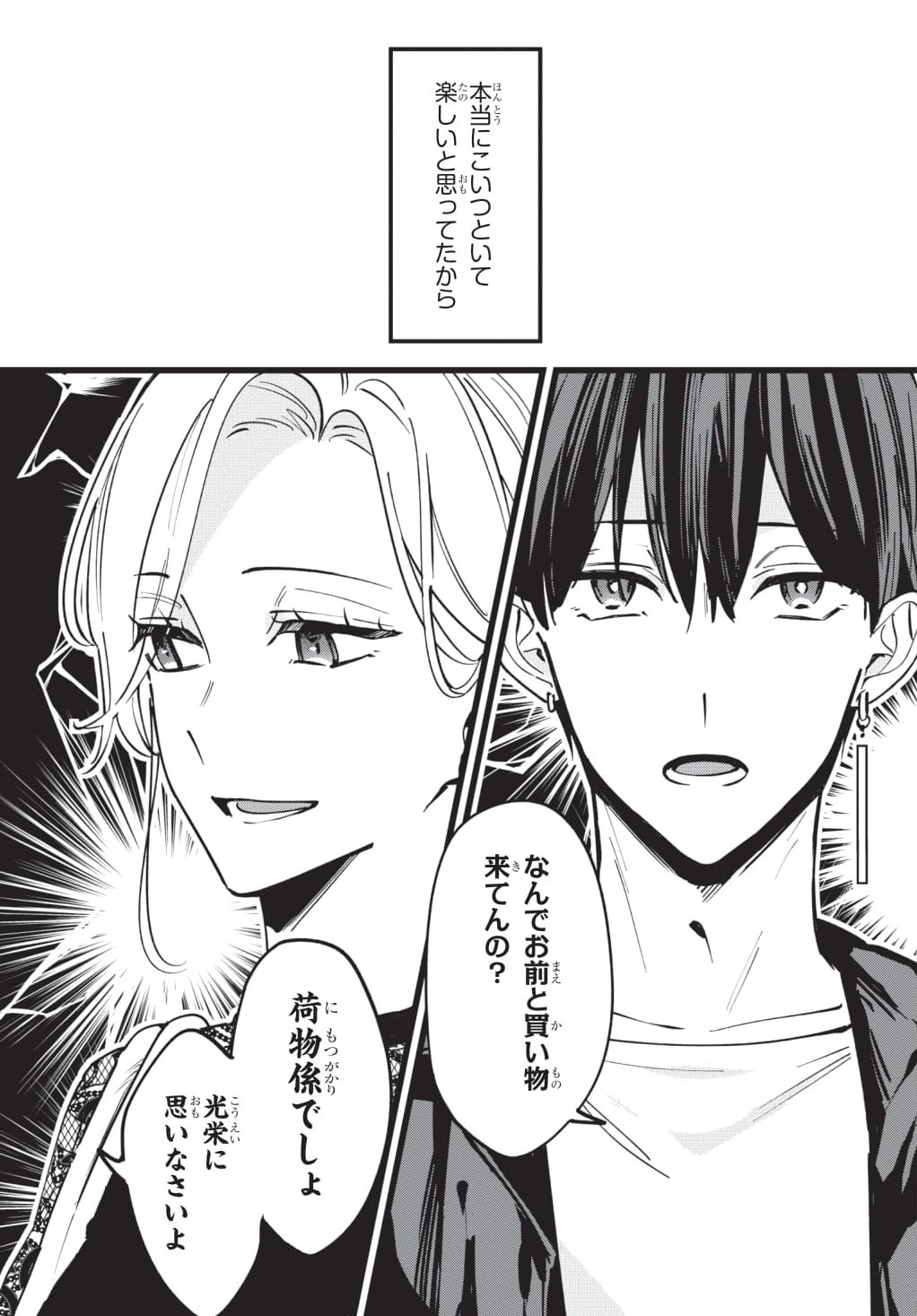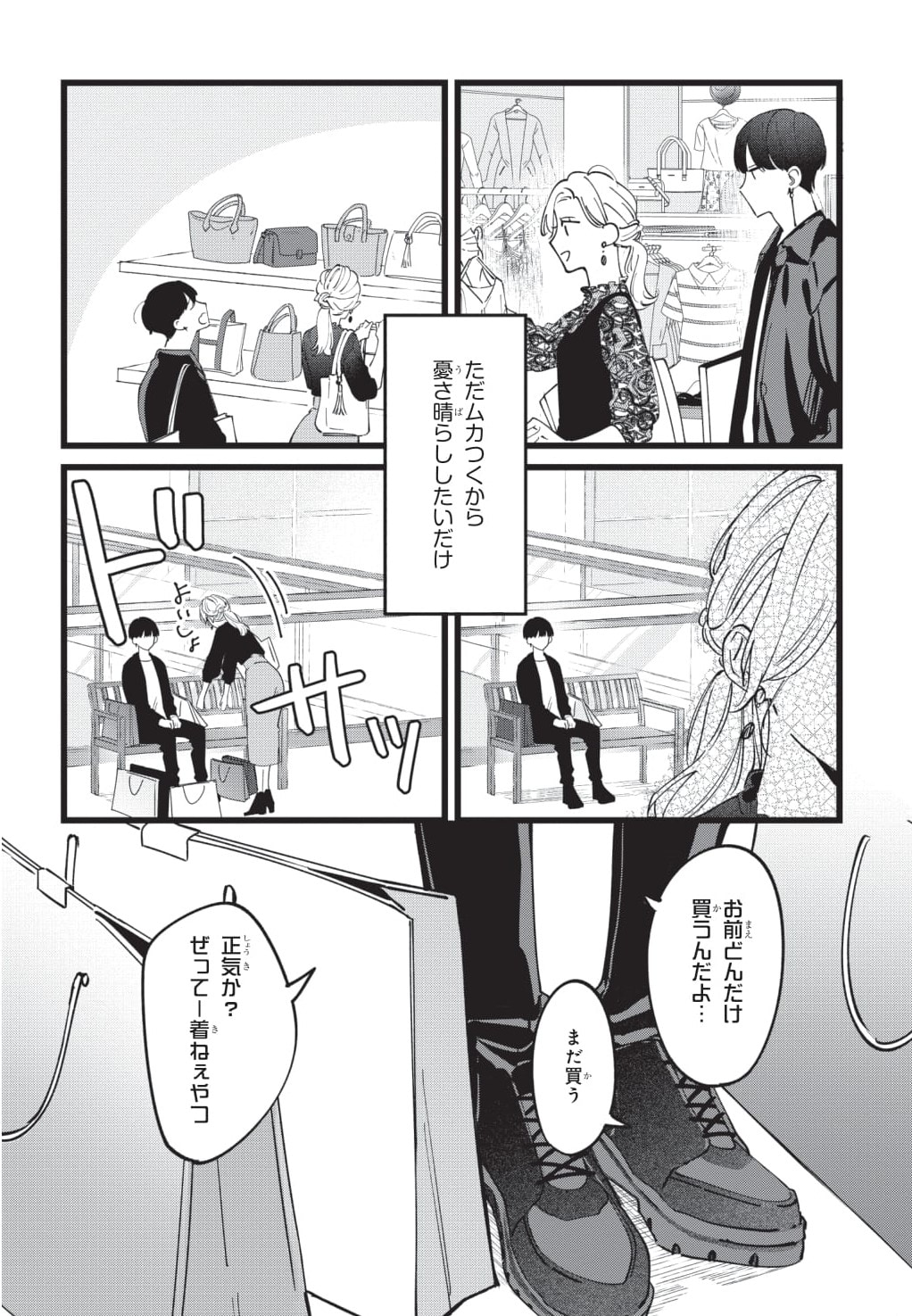 一線を越えて以降、かなりこじれていた2人がなんとショッピングデートに!? カップルのデート……というよりはお嬢様と荷物持ちの構図になっていますが、佳帆の気持ちは晴れるのでしょうか。