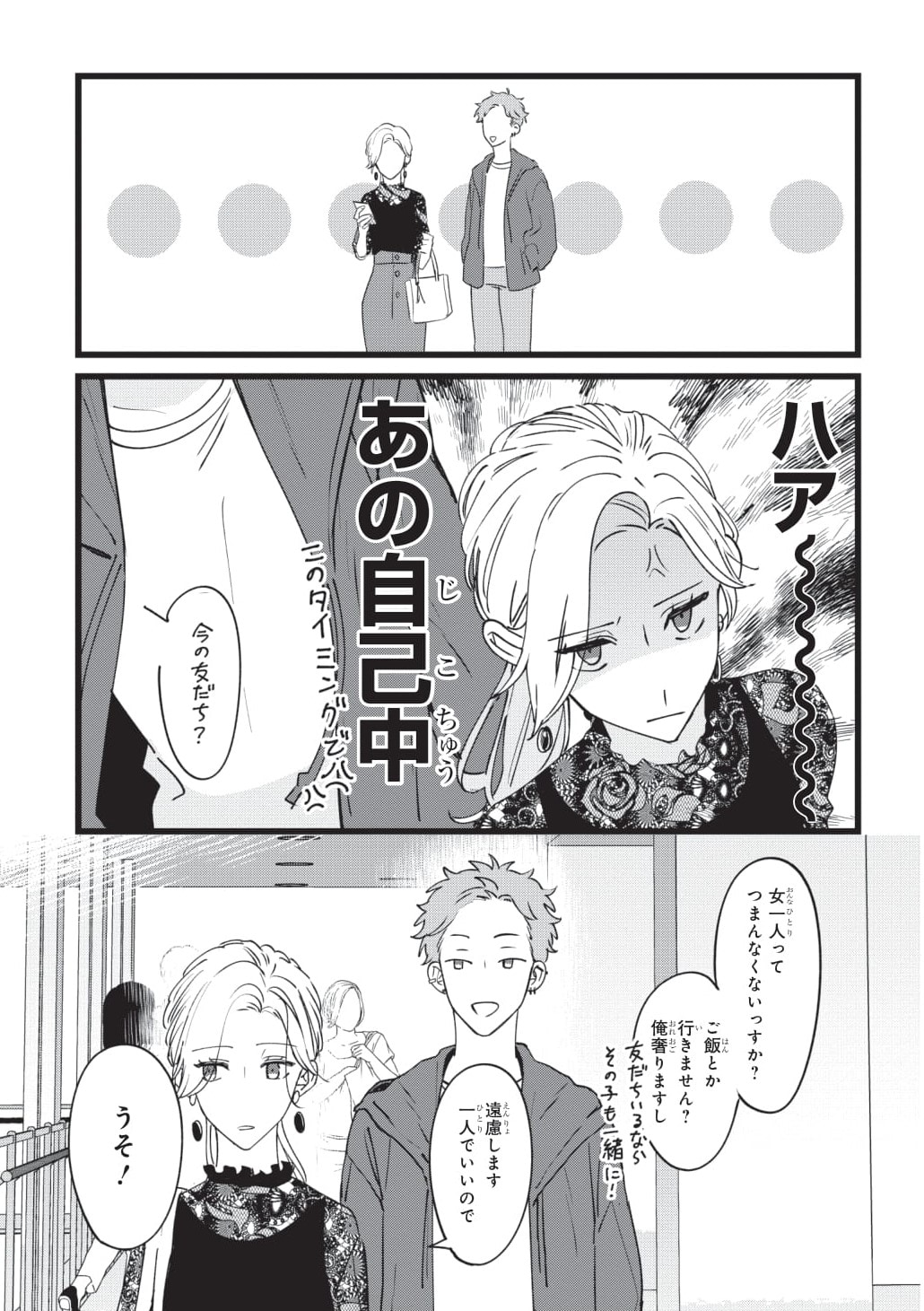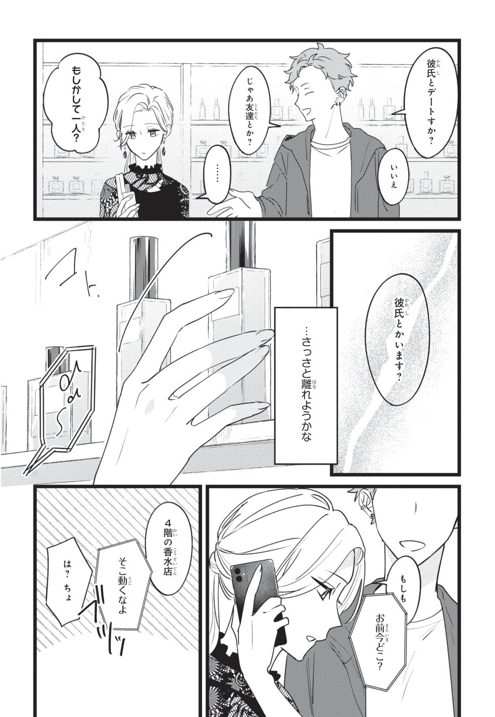ショッピング中にナンパに捕まってしまった佳帆。ナンパ男から離れようとするも、タイミング悪く泰からその場を待ち合わせ場所に指定されてしまいます。泰は男性に絡まれる佳帆になんと声をかけるのでしょうか?