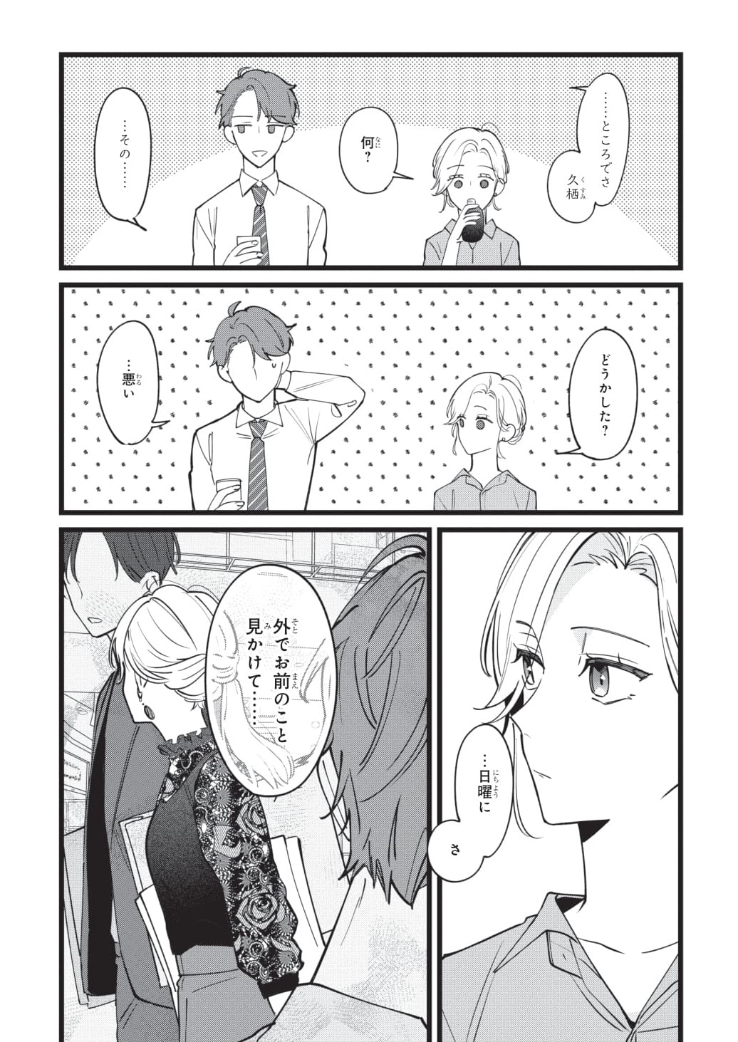 週末のデートが、同僚に目撃されていた……。デート相手は社内での自分からは想像のつかない遊び人で、一度だけ夜を過ごしてしまったこともあるややこしい関係で……と伝えるわけにはいかない佳帆は、一体どうするのでしょうか?