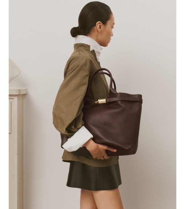 しなやかで上質なカーフスキンレザーを採用し、A4サイズ 縦297mm×横210mmがすっぽりと納まるよう計算されたシルエットのトートバッグ2型(ショッピングバッグ、ショルダーバッグ)には、「ル ロゾ」の“バンブー”が淡いゴールドトーンのジュエルのように輝き、鉛筆の線で描いたようにはっきりと際立つレザーベルトがミニマルなデザインをより印象的に惹き立てます。