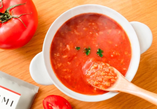 今回、スープシリーズの新作として、プチッと弾むお米の食感が楽しめる、リゾット仕立ての「濃厚トマト風味」が数量限定で登場。2種のトマトの旨みが溶け込んだ、たんぱく質が入っているとは思えない本格的な味わいと満足感をぜひ、楽しんでみてはいかがでしょうか。