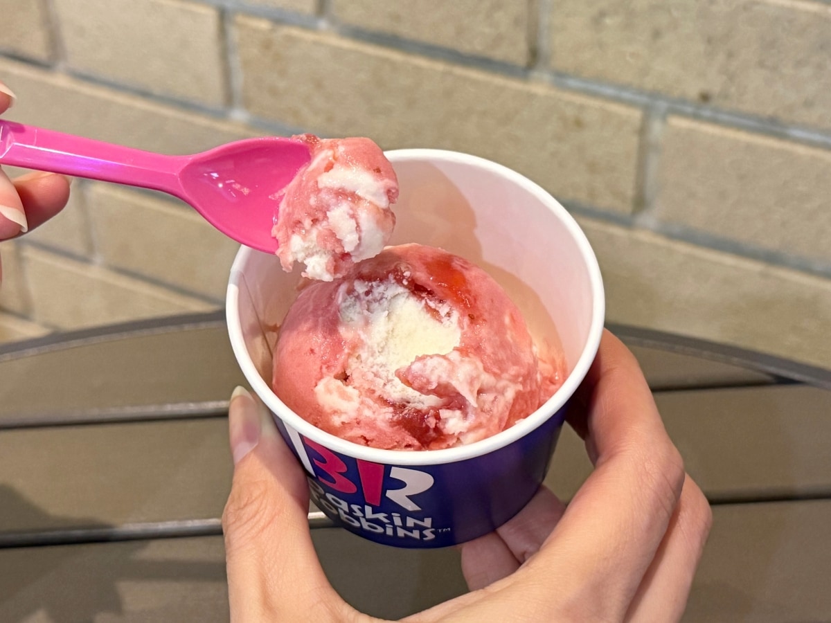 イチゴピューレ入りシャーベットと練乳風味のアイスクリームにストロベリーリボンを絡めた「ストロベリースペシャルタイム」は、いちごの味わいを存分に味わえるフレーバーです。