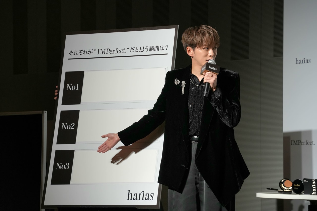 2026年1月15日(木)より、HARIASを代表するアイテムである「HARIAS(ハリアス)薬用クッションファンデーション」の新TVCM「ケアするファンデで、I’MPerfect.」篇を全国にて順次放映開始。放映に伴い、都内で行われた「HARIAS薬用クッションファンデーション新CM発表会」ではIMP.メンバー全員が登壇。CM撮影秘話をはじめ、それぞれがI’M Perfectだと思う瞬間やメイクへのこだわりについて明かしました。