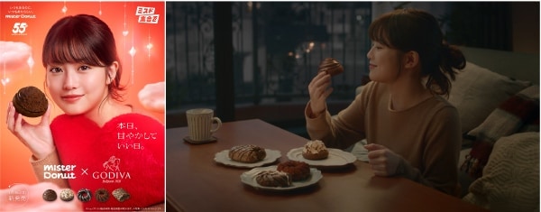 ダスキンが運営するミスタードーナツは1月9日、ベルギーのプレミアムチョコレートブランド「ゴディバ」とコラボレーションした新商品『Mister Donut×GODIVA』全5種類を発売しました。新商品発売に伴い、同日より新TVCM「甘やかしていい日。」篇も放映開始しました。