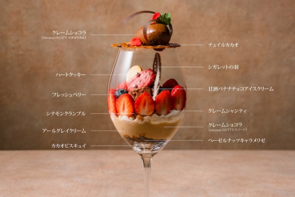 シックスセンシズ 京都で初めて提供するパフェとなる、チョコレート×いちごの一品は、日本発のスペシャリティチョコレート専門店「Minimal – Bean to Bar Chocolate –(ミニマル)」を使用。