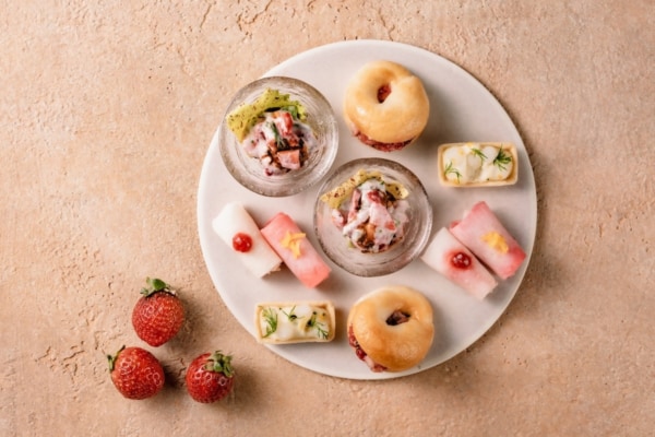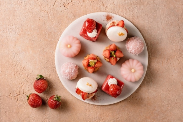 また、パフェに先駆け1月20日からは、いちごをテーマにしたアフタヌーンティー、ドリンクとカクテルの提供を開始。二十四節気の「大寒」から「啓蟄」へとうつろい、冬の寒さがいちごの甘みを深めるこの季節ならではの、多彩なラインアップを用意します。