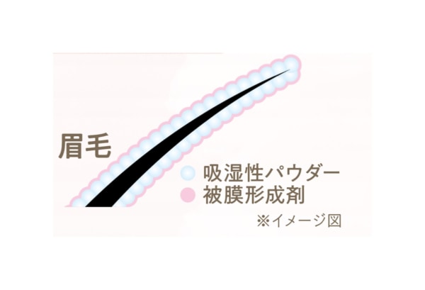 やわらかい膜で眉毛1本1本をコーティングするので、眉毛にムラなく付き、しっかり発色。吸湿性パウダー配合で、油分のベタつきを抑え、乾いてもふんわり質感のままエアリーな仕上がりに。