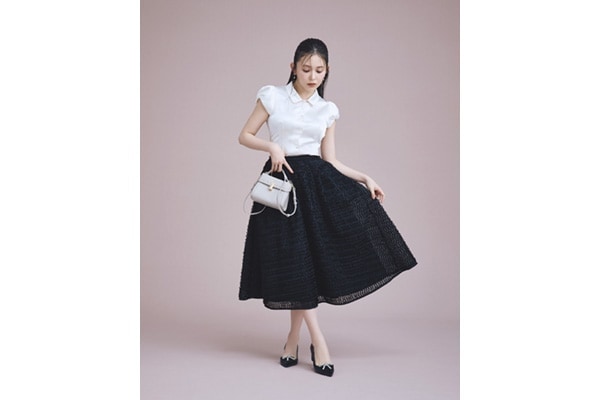 アイテムは、ブラウスやスカート、イヤリング、コートなど。