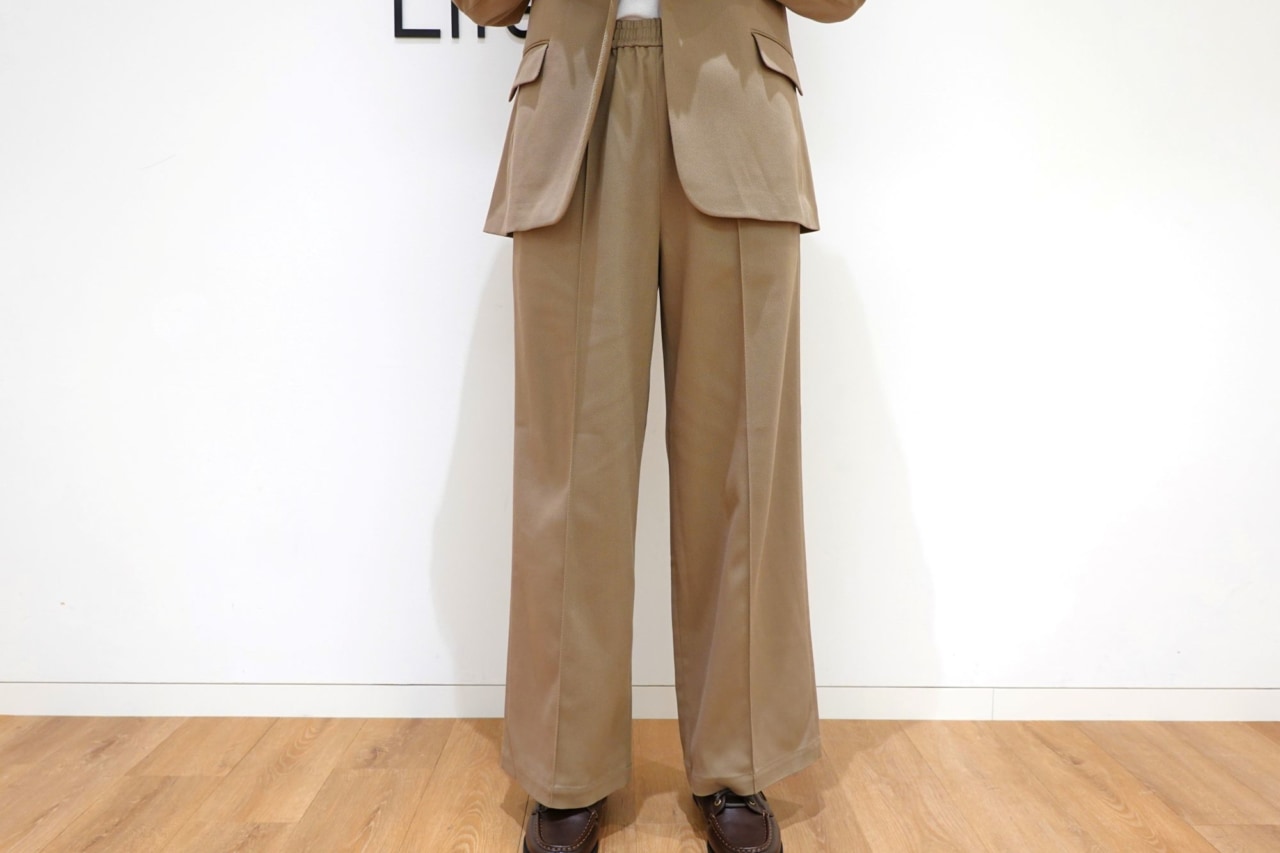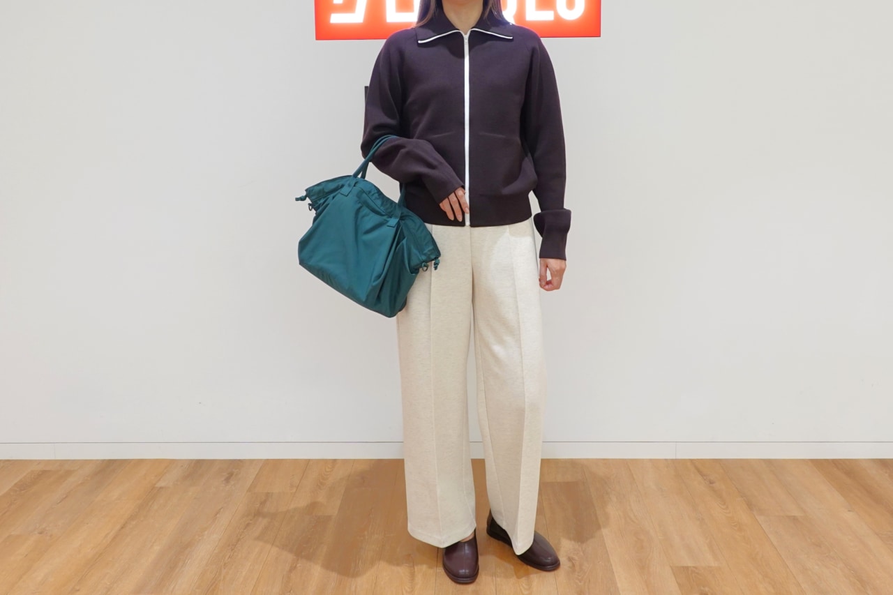 ワイドシルエットの「イージーワイドパンツ」は、きちんと感があるのに堅苦しくない絶妙なバランス。ウエストはゴム入りでドローストリングでも調整もできるので、お腹周りの圧迫感も気になりません。飲み会や会食がある日用に絶対に欲しいと思ったアイテムでした(笑)。