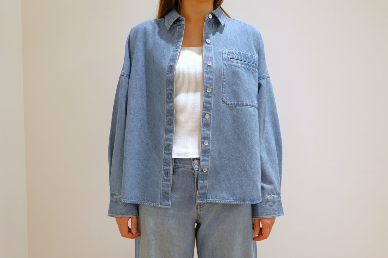羽織っている「デニムリラックスシャツジャケット」は、厚みのあるデニム生地を採用。リラックスシルエットで、インナーで雰囲気を変えられたり、一枚で着たりと汎用性が高い一枚です。