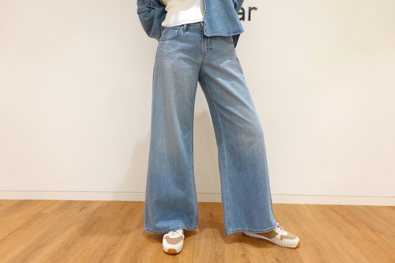 脚長効果抜群な「ローライズワイドジーンズ」は、筆者が一目惚れしたアイテム。ローウエストのヒップから広がるワイドフレアが美脚に見せてくれるんです。コットン100%のデニム生地はとにかくやわらかく、快適な履き心地。Tシャツを合わせたシンプルコーデでも様になります。
