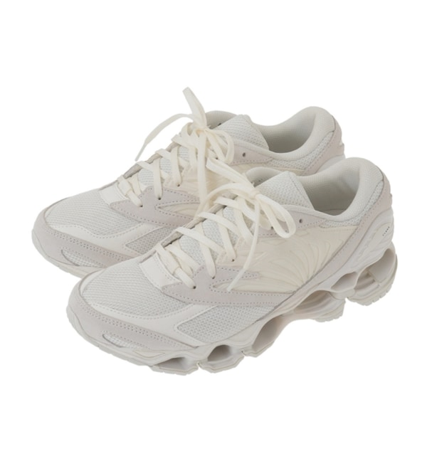 ミズノの代表的なモデル「WAVE PROPHECY」をベースに、CLANEオリジナルのホワイトトーンでまとめたスニーカー。クリーンなホワイトの世界観に、ブラックできゃしゃに施したCLANEロゴが映えます。