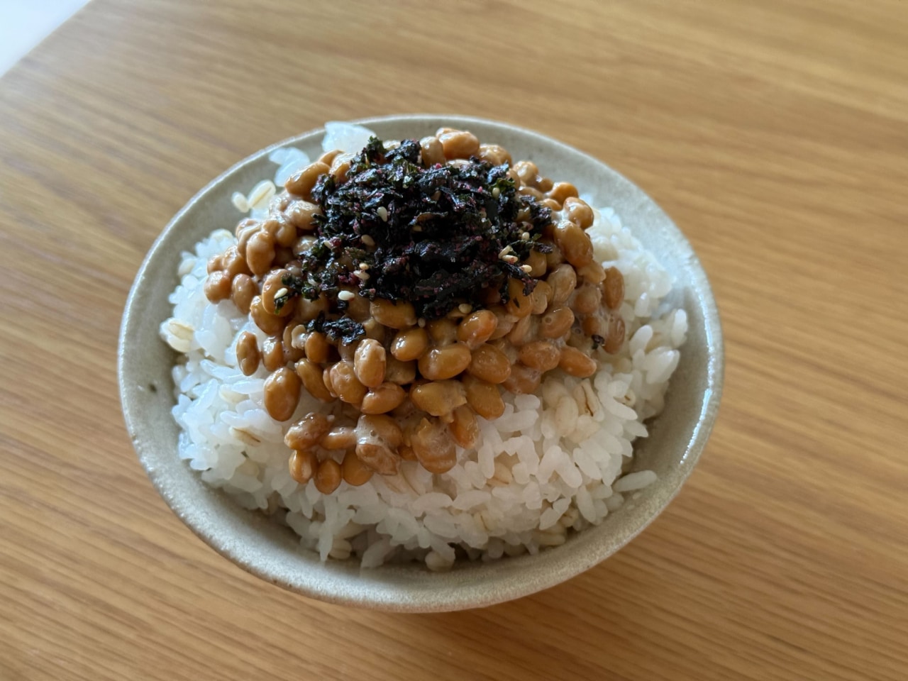 まずは定番の納豆ごはんにトッピング。