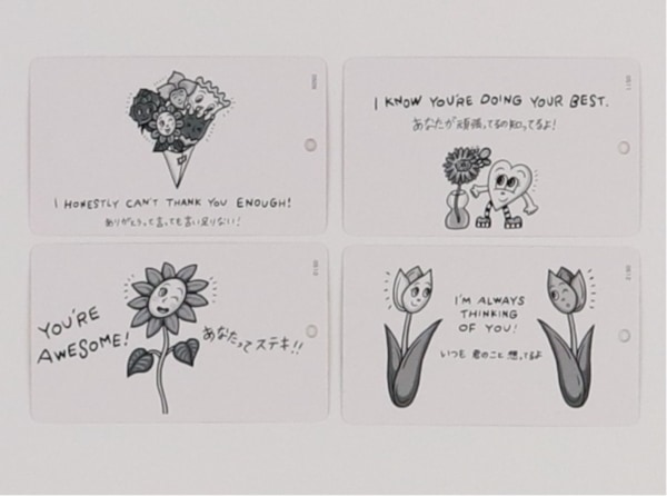 ●商品に添える「ハナコトバカード」でも、カラーごとに「Chocomoo」らしい世界観を表現。デザインにあわせたオリジナルのハナコトバを記載し、ギフトシーンにもおすすめです。