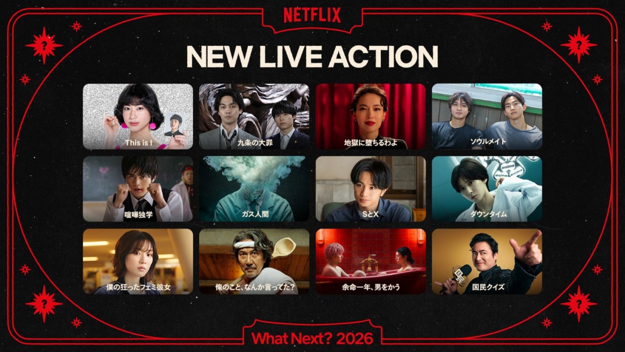 Netflixラインナップ発表会「Next On Netflix 2026」が1月27日に東京都内で開催。当日は2026年にNetflixで配信されるアニメ、映画、シリーズ、アンスクリプテッド、LIVEが公開されました。