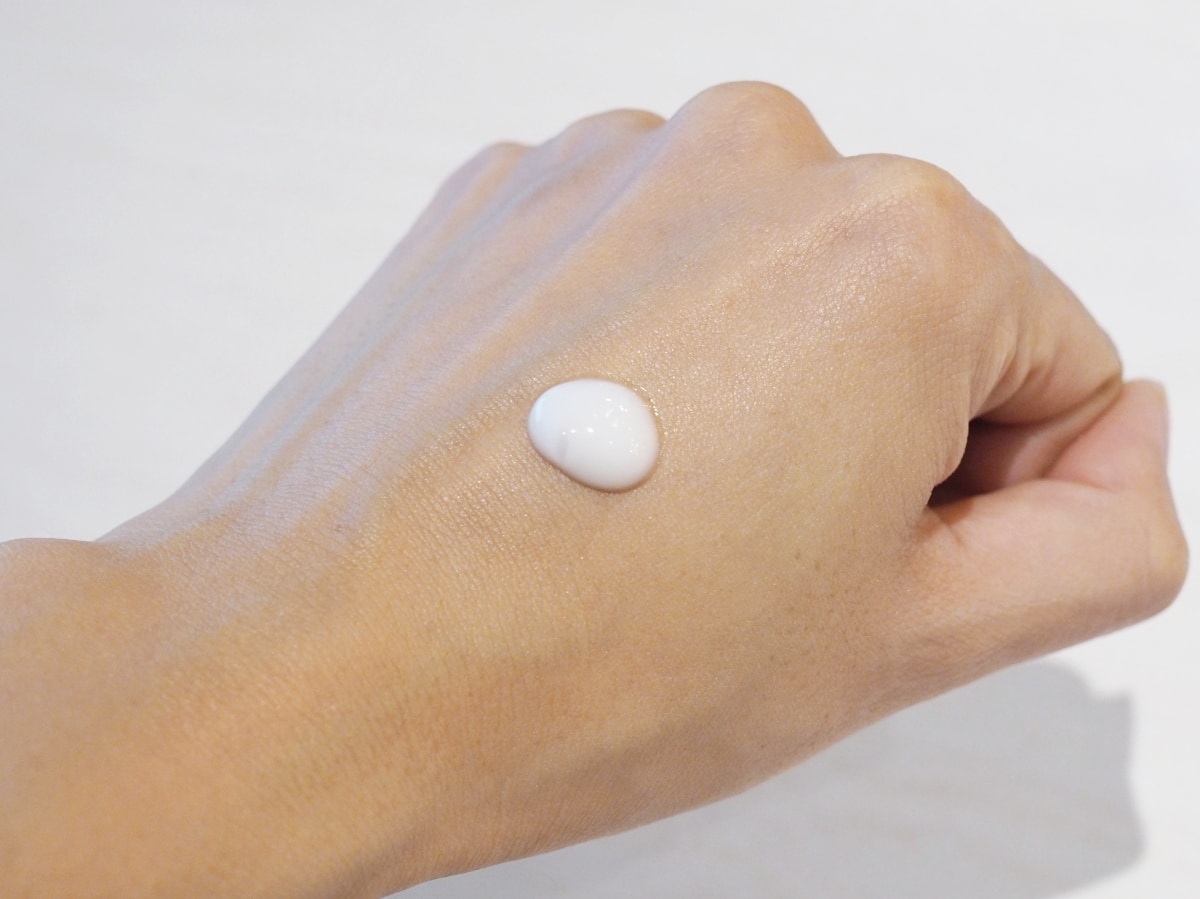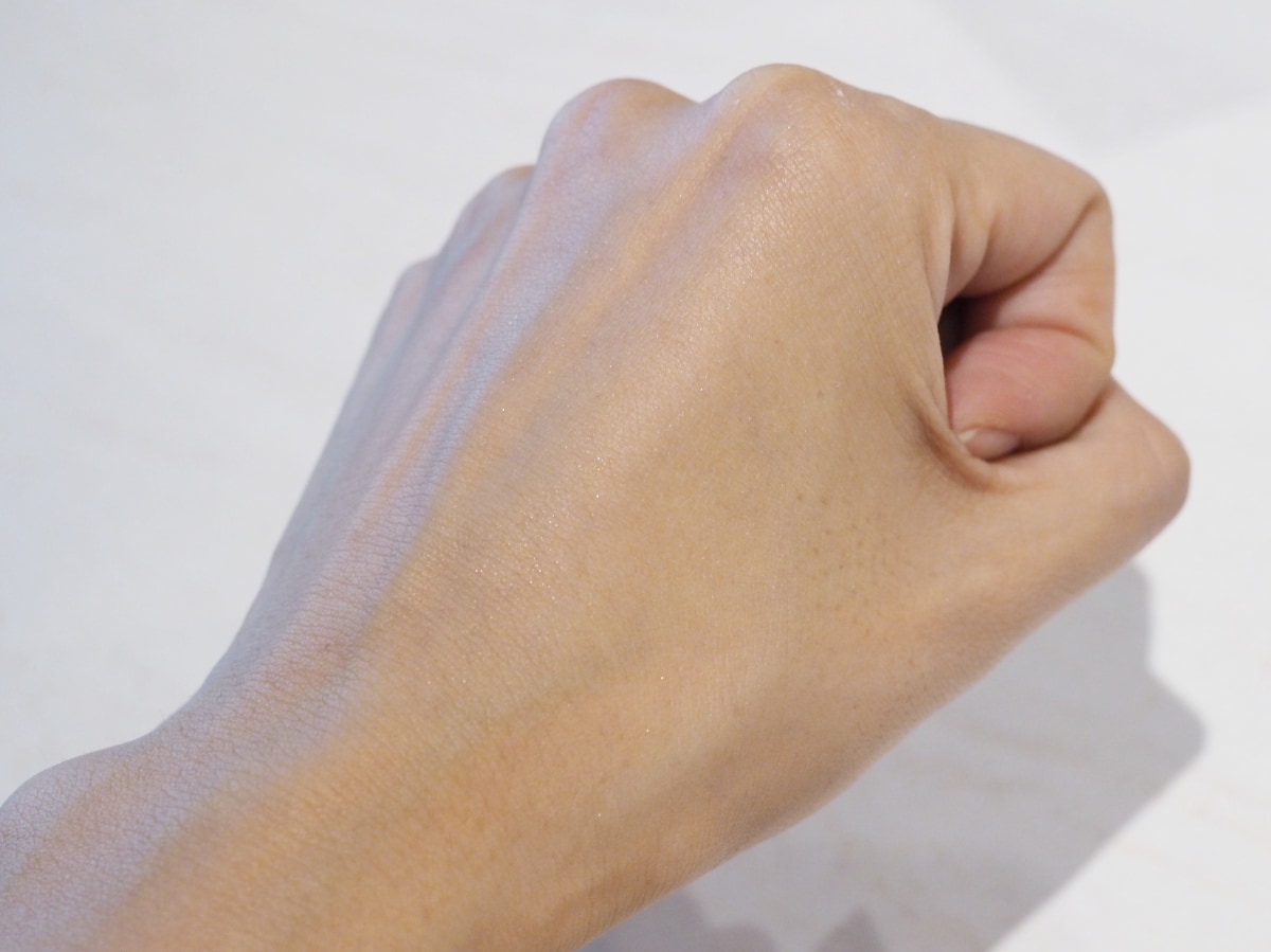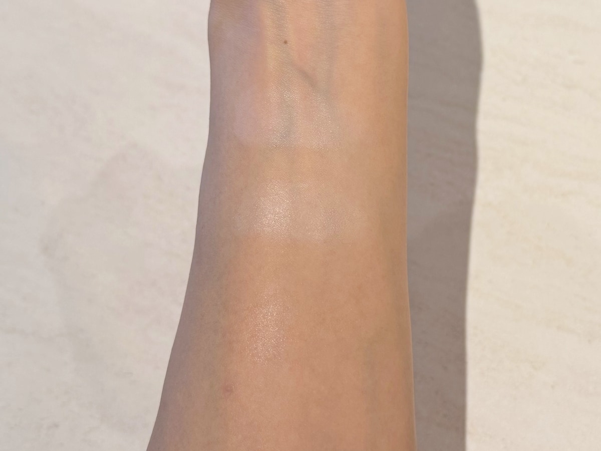 実際に腕につけてみると、みずみずしく軽やかなテクスチャー。スキンケア直後のようなうるおい感でぷるんとした肌に仕上がりました。