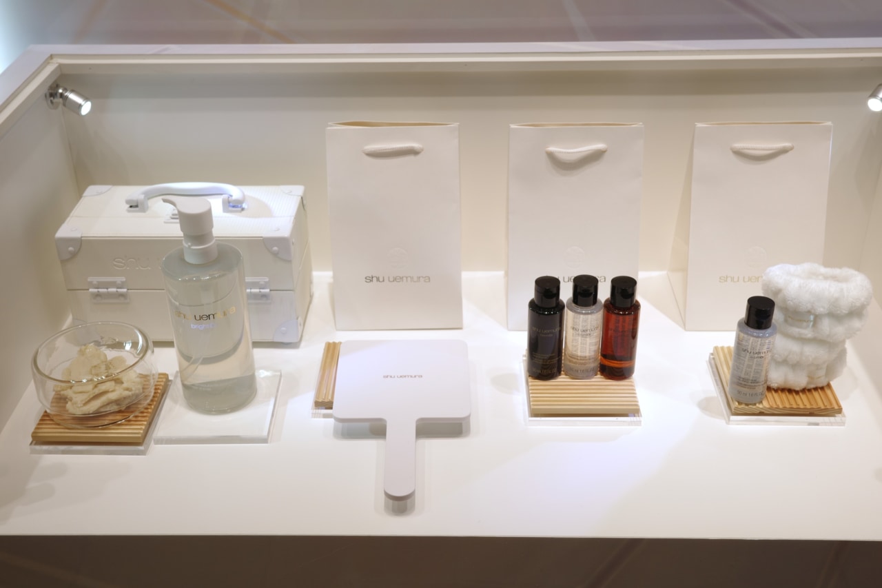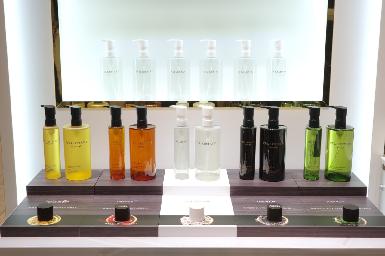 さらに、シュウ ウエムラのクレンジング オイルシリーズを一覧できる展示も。シュウ ウエムラでは「アルティム8∞ スブリム ビューティ クレンジング オイルn」や「ブラック クレンジング オイル」など個性あふれるクレンジング オイルが人気です。香りもそれぞれ特徴的ですが、今回のイベントではそれぞれの香りを試香することができますよ。