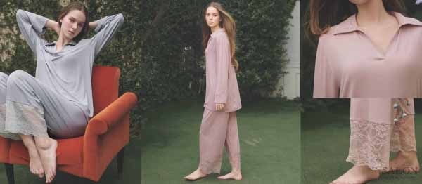 そのほか、ゆったりとした着心地を叶えるレーヨン混の薄手カットソー「レーヨンレーススキッパーパジャマ」(7,600円)もブルーグレー、ピンクの2カラーで用意しました。