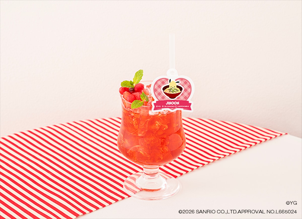 メニューは、「TREASURE」のメンバーと「はぴだんぶい」のキャラクターたちの好きなフードをグラスデザートののったワンプレートで提供。また、ベリーの香りが広がるチョコベリーアイスミルクや、りんごの甘味とシナモンの香りが心地いいホットアップルシナモンティー、フルーティーなストロベリーティーなどのドリンクも用意しました。