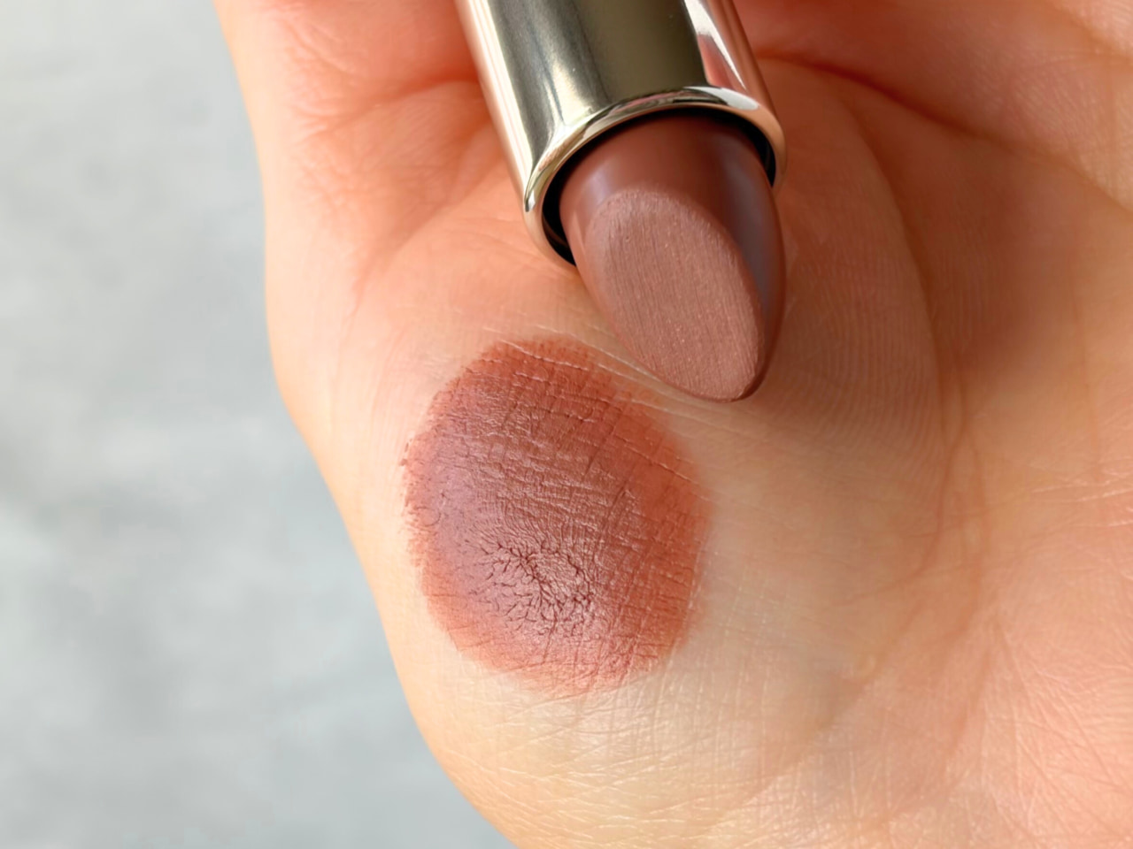 そんなテンションを色で表現したのが、RMK「ザ マット リップカラー 11」の「低温ブラウンベージュ」です。シックなブラウンの奥に、やわらかなベージュと愛らしいピーチを溶かした絶妙カラー。