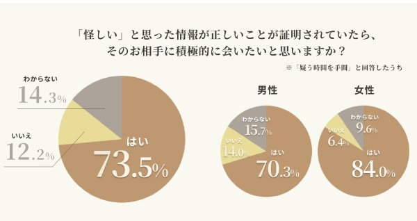怪しいと思った情報が正しいことが証明されていたら、その相手に積極的に会いたいと思うか尋ねると、73.5%が「はい」と回答しました。