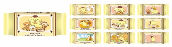 「ポムポムプリン」の大好物である“プリン”をイメージした「ココナッツサブレ プリン味」は、カスタード風味の生地にカラメルパウダーを練り込み、ふんわりとした甘さとコクのある味わいに仕上げました。パッケージには、特別に描き下ろした「ポムポムプリンとお友だち」をあしらいました。