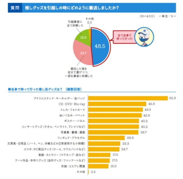 推し活×引越しの気になる関係性。約半数が、推し活グッズは「全て自分で運んだ」と回答