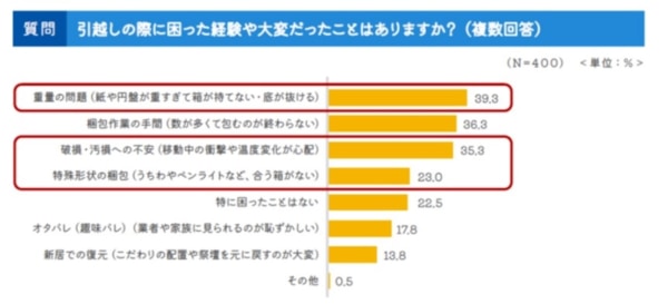 最後に、推し活グッズを「引越しする際に困った経験や大変だったこと」をたずねたところ、推し活グッズの量や形状による不具合を気遣う回答や、破損や汚損に対する心配が挙げられ、推し活をする人の“推し活グッズ愛”がうかがえました。