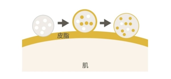 皮脂吸着パウダーには無数の孔が存在。球状で多孔質なため、皮脂をよく吸着し、サラサラな使用感に。