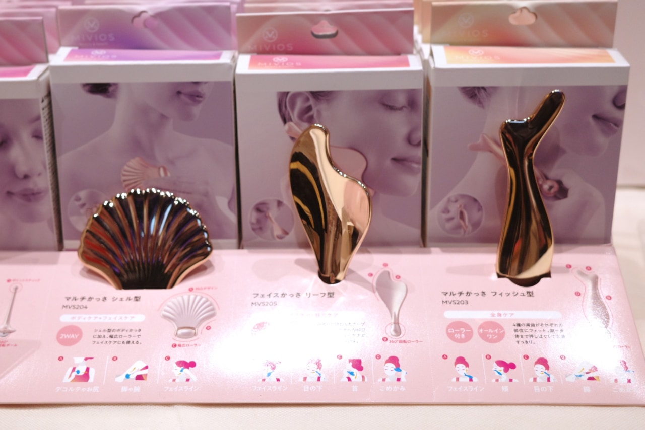 MIVIOSからはかわいらしい見た目のコンパクトなカッサが3種登場! シェル型は幅の広い面がボディに、ローラー部分はフェイスラインにフィットする構造になっており、リーフ型は目元などのポイント使い、フィッシュ型は頭から顔、脚、こめかみなどのポイントでの“押しほぐし”に役立つデザインです。