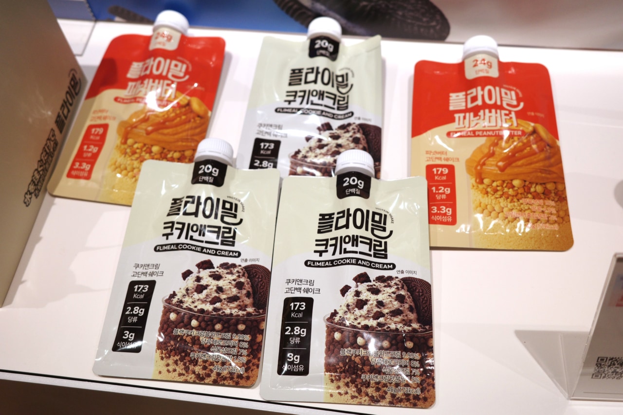 韓国発のプロティンシェイクブランド「フライミール」は水を入れてシェイクするだけという手軽さと、デザートのような満足感が魅力です。持ち運びやすいパウチタイプなので、時間が無い中でのランチなどでお腹を満たすことが可能! フレーバーの種類も多く、飽きにくいのがうれしいですよね。ピーナッツバターとクッキー&クリーム(各486円)の、2種の新フレーバーが登場しました。