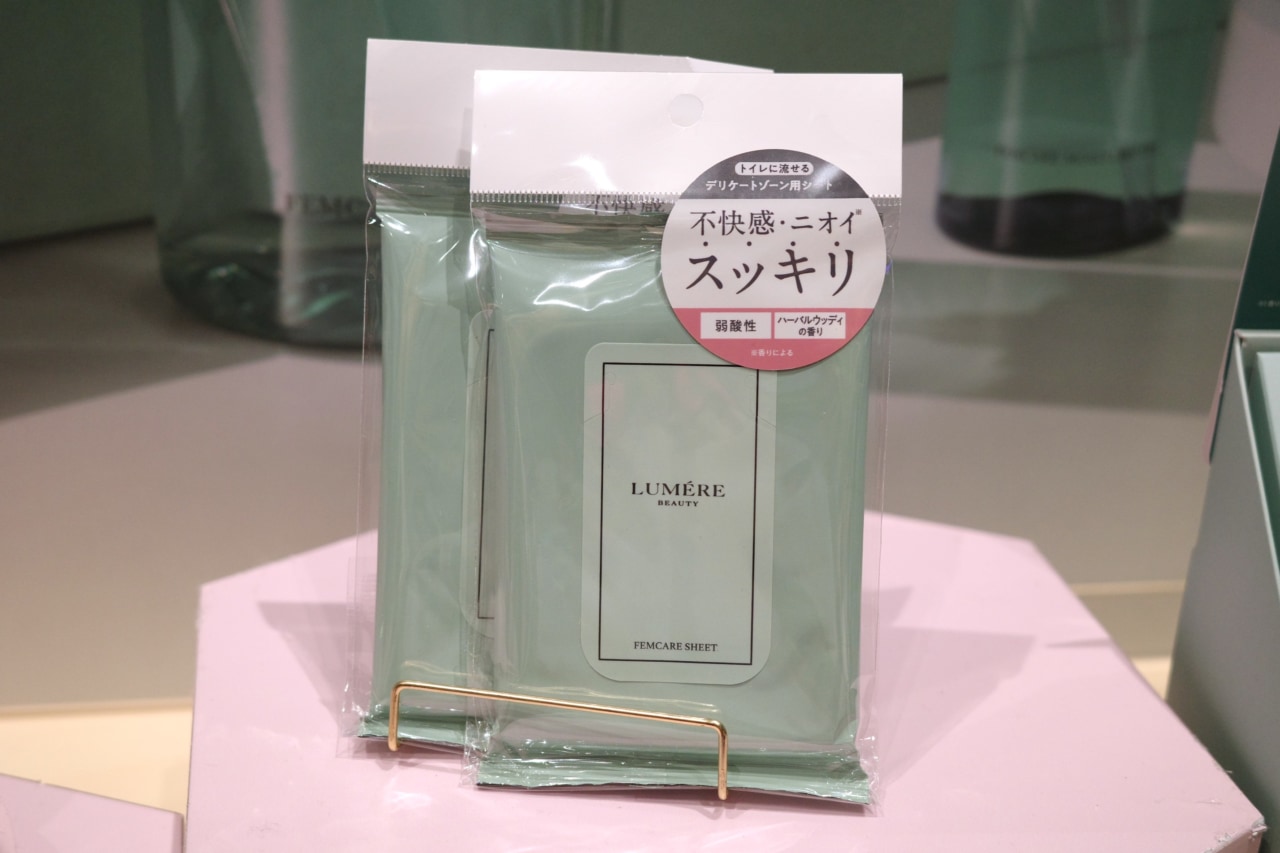 フェムケアにはぜひ専用のアイテム選びを。LUMERE BEAUTY(ルメールビューティー)のフェムケアシート(10枚入り/681円)は不快感やニオイが気になるときにサッとふき取り、トイレに流せる便利アイテムです。