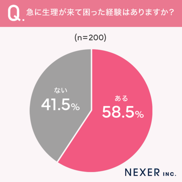 58.5%が「急に生理が来て困った経験がある」と回答