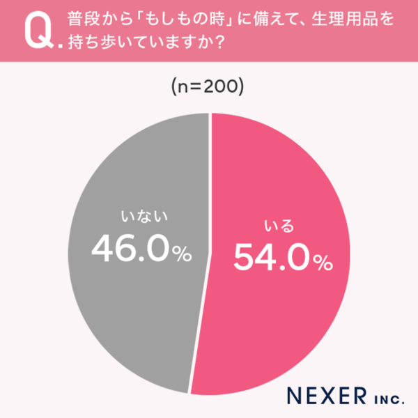 次に、普段から「もしもの時」に備えて生理用品を持ち歩いているかどうかを聞いてみました。
