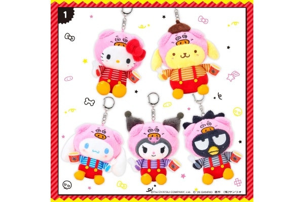 同コラボでは、「ハローキティ」、「ポムポムプリン」、「シナモロール」、「クロミ」、「バッドばつ丸」が「ブタメンくん」になりきったオリジナルデザインによる全18アイテムが登場します。