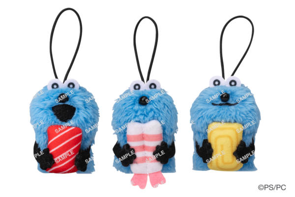 おすしのネタをギュッと抱えるスンスンの、指人形としても遊ぶことができるコラボ限定マスコットです。