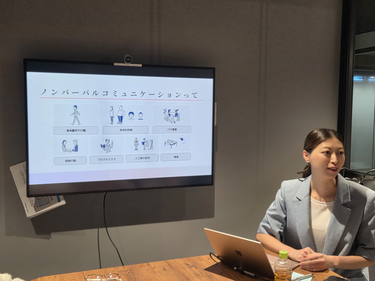 Ori:ノンバーバルコミュニケーションの重要性は意識していましたが、自分が思っている印象と、他者から受け取られる印象が違うことに気づかされました。特に、身振り手振りは位置によって伝わる熱量が変わる点が印象的で、自分の振る舞いを見直すきっかけになりました。