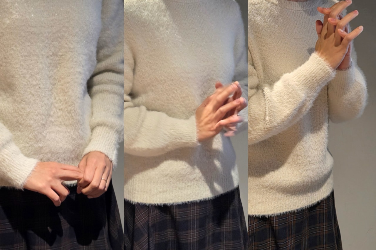 手の位置に注目。(左から)腰下・胸元〜腰・胸前〜胸上