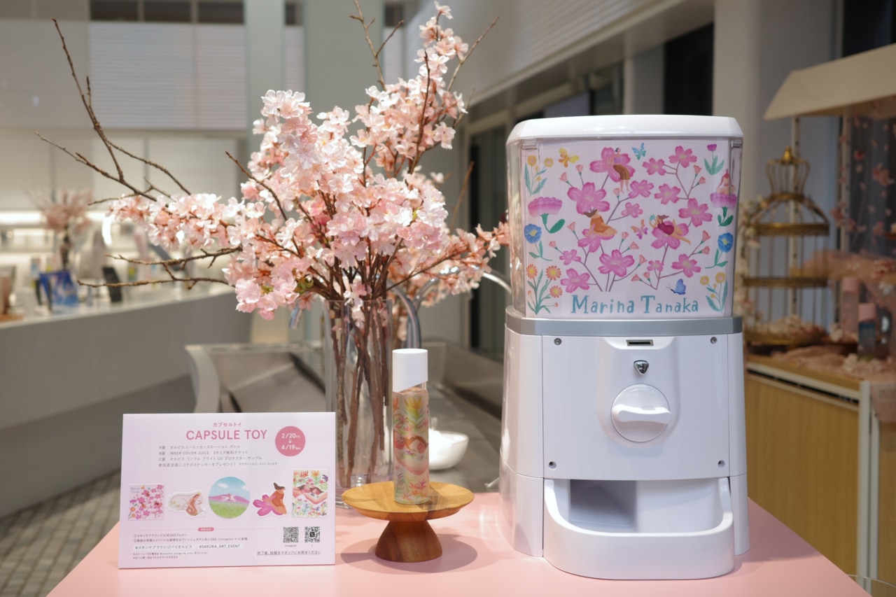 今回のイベントでは、イベントの様子をSNSに投稿した方が挑戦できるカプセルトイが用意されています。景品は田中マリナさんコラボの非売品デザインボトルや、『JUICE BAR』ドリンク引換券、田中さん作品のオリジナルステッカーなど。必ずプレゼントが当たるので、ぜひ参加してみてはいかがでしょうか。(お一人様一回まで)