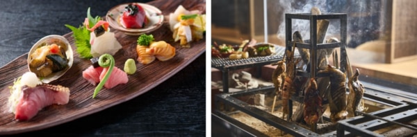 メイン料理として魚や海老の素材そのものを味わう炉端焼き料理を用意。炭火でじっくりと焼くことで食材には香ばしい風味と深みが与えられ、格別な旨味を愉しめます。