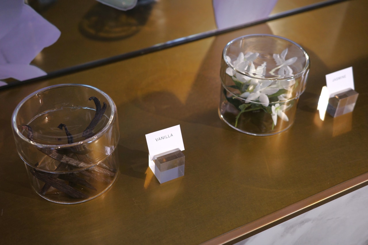 純粋なアルデヒドのグリーンアコードが鮮烈な爽やかさをトップに与え、ジャスミン、ホワイトフラワーの輝かしい調和と共にやわらかなシグネチャームスクへ。そこから乾いたウッディな質感と温かなクリーミーさを併せ持つシダー、深みを与えるオークモス、アンバーへと移り、お米由来のすっきりとした甘さのバニラが奥行きのある余韻を残します。