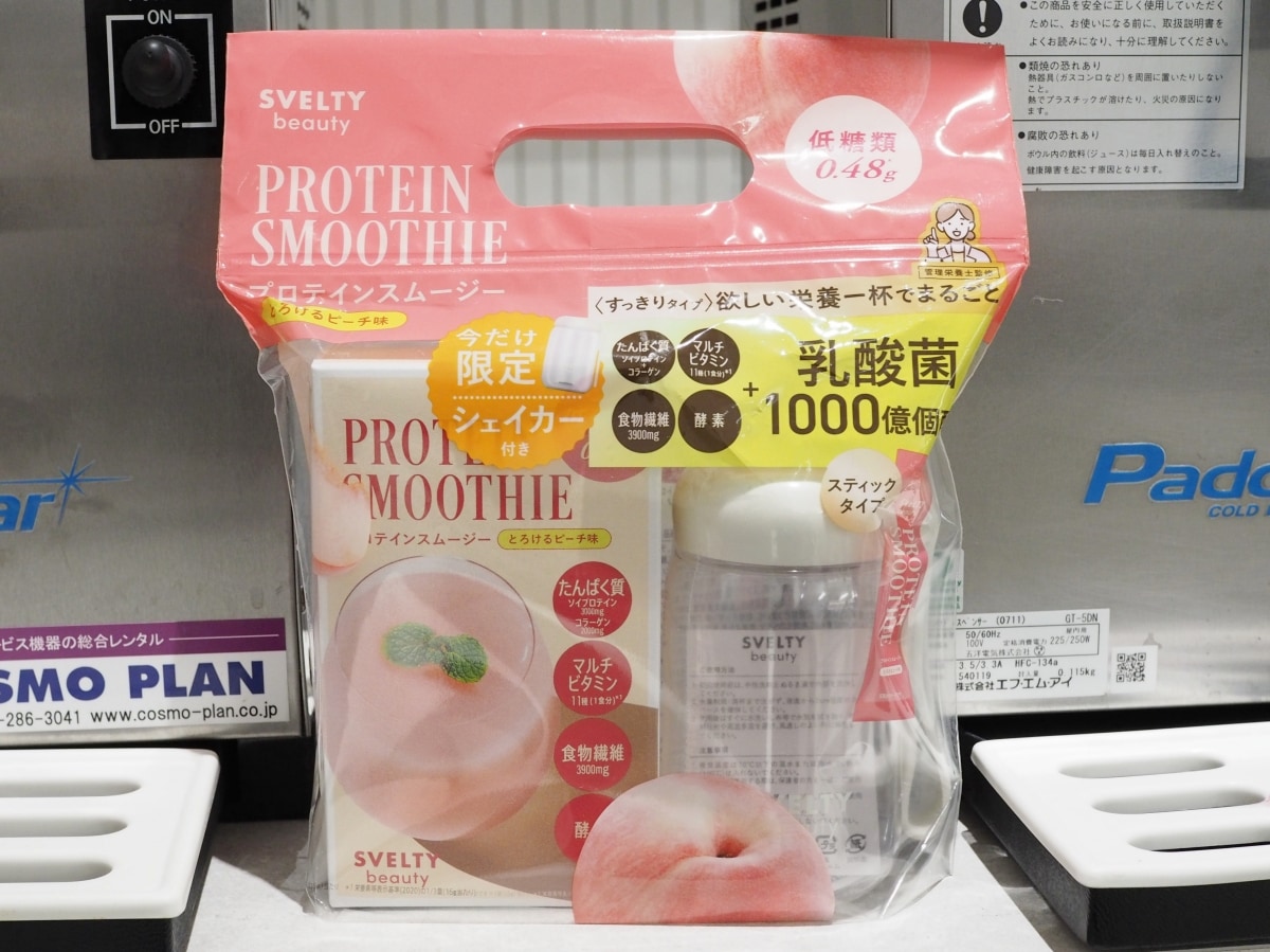 スベルティビューティー「プロテインスムージー とろけるピーチ味」(5袋入 2,138円)