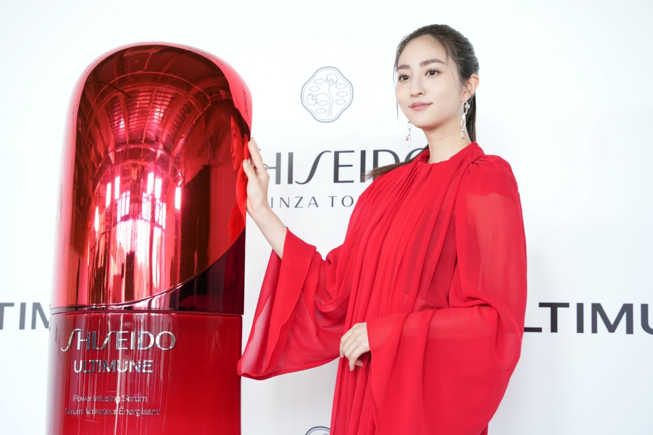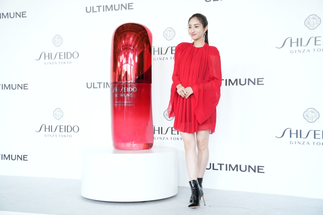 ラストには真っ赤なドレスで堀田茜さんが登場。アルティミューンの魅力について堀田さんは「365日どんな肌質の人にもどんな年齢の人にも使えるというのを聞いて。花粉とかで肌が敏感だったりする時期や紫外線が強っかたりする時期など、どんなシーズンも肌の敵っていると思うんですけど、そういう特にアルティミューンみたいなお守りの一本を持っておくと、年中使えるのですごく頼もしい存在になる」と語りました。