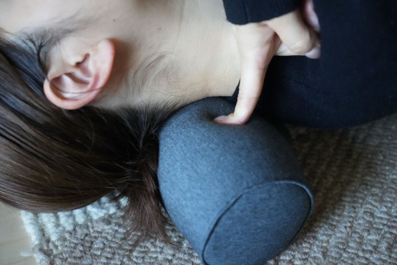 実際に横になってみると、ぐっと強く伸ばされる感覚というよりも、首をやさしく“預ける”ような感覚。じんわりと首元が伸びていくのが分かります。